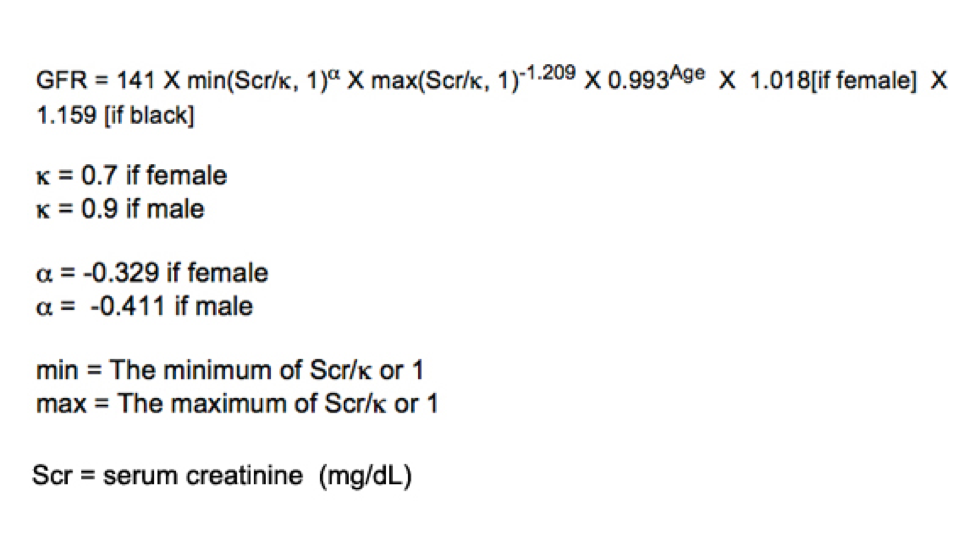 A lot of equations were developed over the years that uses the blood level of creatinine, gender and race to estimate kidney function or eGFR. Gender and race are used because of the natural differences in the bulk of muscles that produce creatinine. The equation used more than any others is called CKD-EPI equation.