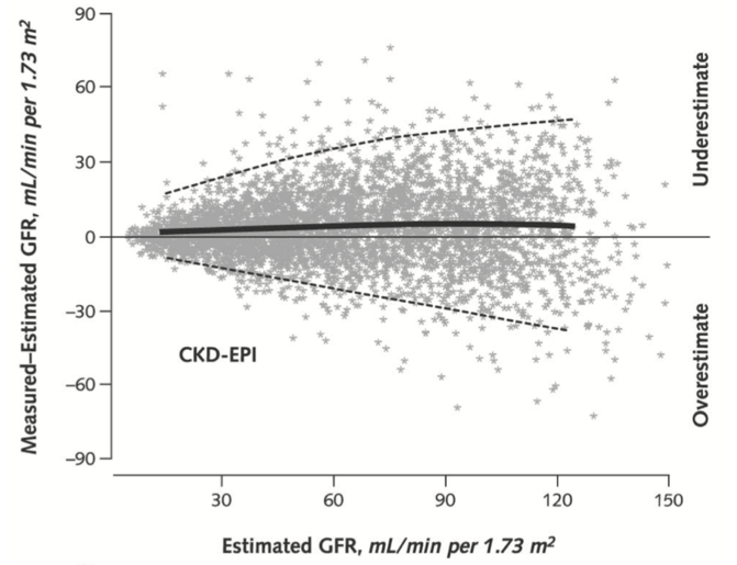 These equations are more right when the kidney’s aren’t working well. The better the kidneys are doing their job, the more wrong the estimation is. If a person is older, overweight, or has a lot of muscles, the results are also not as correct.